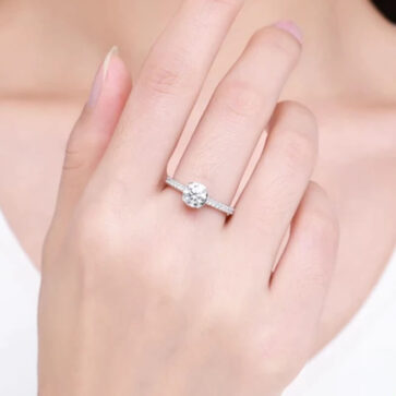 טבעת יוקרה- Silver Ring 1ct Shiny Moissanite For Women